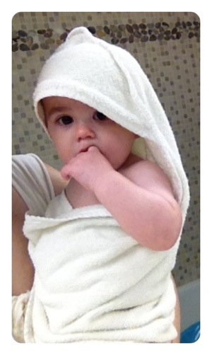 Someone is definitely getting used to his hooded towel, loving the extra head treatment.