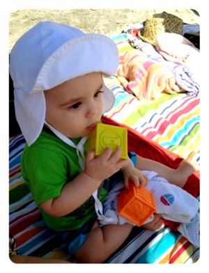 A little later, Daddy took you into the water and got your little bum wet. You screamed but you rebounded back much faster. We brought you back to our beach tent and you hung out on the blanket in your sun hat.