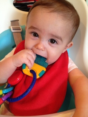 Lil B’s first two teeth have cut in this week. And I use the brutal term “cut” because holy moly they did. His bottom front teeth are first to arrive. He was cranky the Friday before last when Nanu was watching him because his first one was arriving later that night. This week, of course while we are on vacation, the second of the bottom two has decided to arrive. B has been such a little trooper but this second one has been brutal. We saw blood. But we are fortunate that the process has not interrupted his nighttime sleep. Though tonight was a challenge as it took him three tries before he fell asleep in Daddy’s arms and then to bed.