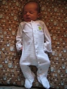 The picture on the left is Lil B at 1 week, I put him in the same outfit because apparently with all the photos I take of him this is the only one that I could get a good comparison on. He looks taller but don’t let that fool you – he barely fit in this outfit, his toes were curled. I am a bad mom but I had to get this photo for comparison – plus he doesn’t look unhappy he is smiling, right? Basically he looks famished and skinny in the first one and the pic on the right looks like a happy short chubby baby. He is still quite a tiny little man but he has filled out more – just look at those cheeks!