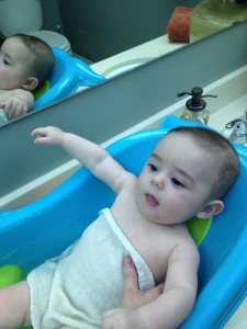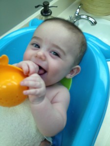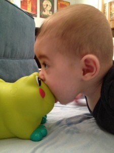 8. You continue your obsession with Mr. Froggy that Aunt GZ gave you. I think you like his big eyes, smile and bright green body – you get so excited to see him. He is actually the tub faucet cover so he will be in your life for a while – don’t worry little man he isn’t going anywhere.